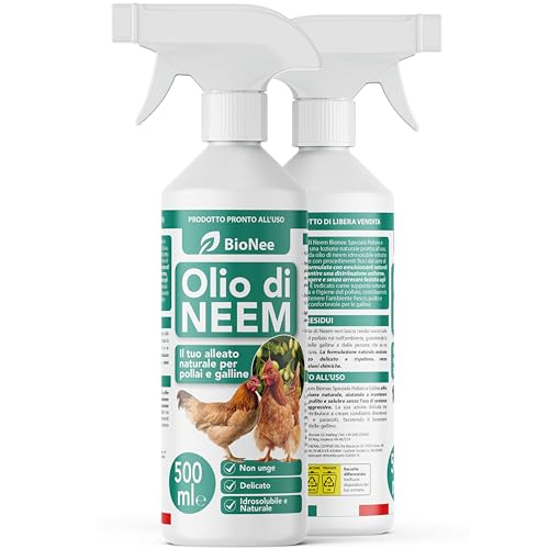 Bionee Olio di Neem Spray Pollaio e Galline 500 ml – Lozione Naturale Pronta all’Uso, Protezione Contro Insetti e Parassiti, Sicuro e Delicato, Idrosolubile, Zero Residui